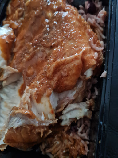 Read moreAppalling. First I was served rice and peas with jerk chicken and when I mentioned that I hope there is not too much sauce, it was uncovered to reveal rice swimming in at least two table spoons of sauce and the chicken was floating in it. I audibly gasped and was so released I'd said something before leaving. I apologised for not stating requirements before, (but I doubt any anyone would have been happy with it) and I was given a fresh, drier, portion. I observed that the container felt extremely light for a meal I'd just paid £10 for but kept it moving, hoping for the best. Arriving home my suspicions were confirmed and I opened the container to reveal the tiniest portion of chicken, consisting of a very small chicken leg (two bites worth) and a rib. I don't know if the person who served it had Napoleon complex or what but as a grown woman I expect to be treated like one. I paid for an adult size meal and expected an adult sized portion, namely, leg/thigh. The rice was soooooo dry and kidney beans crumbling and clearly not cooked that day. I think the original sauce overkill was to disguise this fact......Dellys, you guys are taking the 'p' and have no respect for your patrons. My fault for coming back. Utter joke, not the first time, but will most definitely...