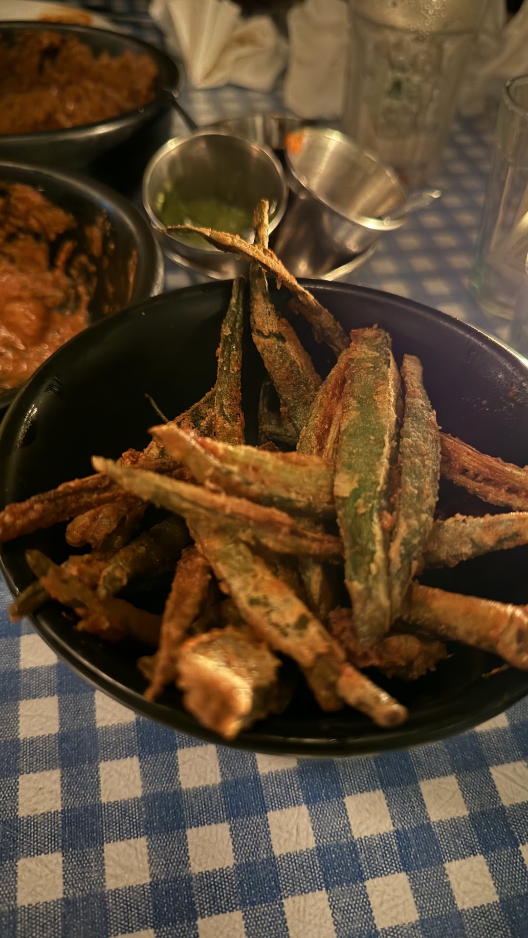 Okra fries and prawns were very well seasoned and crispy.