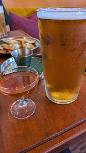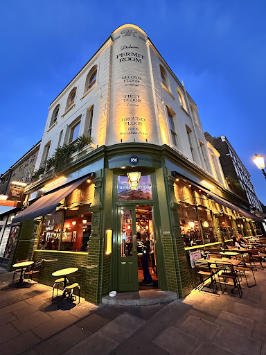Nestled within the vibrant bustle of Portobello Market, the Dishoom Permit Room offers a unique and welcome departure, adding a different flavor profile to both the market and the surrounding Notting Hill neighborhood. While Dishoom's main restaurants are known for their lively, all-day dining experience, the Permit Room feels like a more intimate, clandestine escape—a perfect spot for a pre-dinner drink or a late-night bite. What truly sets this place apart is its masterful blend of classic cocktails and nostalgic Indian snacks, all served with a dash of old-world charm. The decor is simply beautiful, with a warm, dimly lit ambiance and an attention to detail that transports you straight to a vintage Bombay bar. The great vibes here make it a perfect spot to unwind and soak in the atmosphere. For those looking for something truly special, the drinks menu is a must-explore. The Thums Up Saerac Short & Boozy is an absolute revelation—a bold, boozy concoction that's perfectly balanced and a delightful nod to a classic Indian soft drink. It’s an amazing drink that encapsulates the spirit of the place in a single sip. While Dishoom is famous for its excellent vegetarian options, here, the non-vegetarian choices truly shine. They manage to evoke a sense of home and nostalgia that's hard to replicate. The star of the show, for me, was the Chicken Puff. With its flaky, buttery pastry and savory filling, it literally tasted the same as the ones I remember from old Bombay bakeries. The fact that it's served with that specific, nostalgic tomato ketchup is a beautiful touch that takes you right back in time. The Permit Room is more than just a bar; it's a sensory experience that adds a layer of sophistication and cultural richness to the Portobello Market landscape. It’s a perfect spot for anyone looking to step out of the ordinary and into a space filled with beautiful decor, great vibes, and...