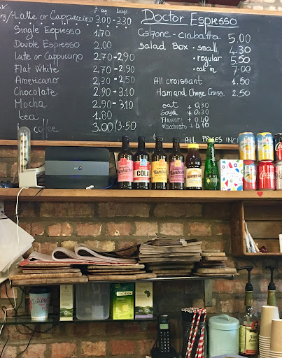 Finally, Doctor Espresso Caffetteria, although small, is a great place; the decor is quirky, but well thought out and the outdoor seats are a delight in the summer. The staff, all of whom (bar one) are Italian are friendly and helpful, giving the place a very neighbourhood feel. Worth getting off the train specifically...