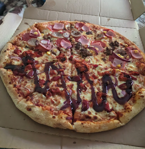 Read moreFor me personally the pizza was undercooked very doughy and hard to chew and swallow. The toppings are not generous at all for example on the new Korean there was barely any chicken and even less red jalapeno. Same with the other half of the pizza I swapped mushroom for sweet corn on the meat feast and there were like 10 sweet corns. Very tight. Doubt I'll order again any time soon, my review seems in line with the recent trend trend of dissatisfied customers. I actually left the pizza and just ate the nachos which were better than the pizza...