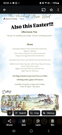 Read moreI visited Dotty's Teahouse for the first time today with my sister and great niece and was so impressed....I loved the atmosphere,it was so friendly,clean and welcoming,the hot chocolate is to die for as well as the cake and bread pudding,lovely clean toilet and a nice little children's play area, we wasn't rushed to give up our table at all and there were lots of little interesting bits and pieces you could purchase around the Teahouse....all in all I would highly recommend Dotty's if you love the traditional cup of tea in China teapots and cups and wonderful cake....as well really nice staff and good prices too! I went back to Dotty's Teahouse yesterday with my son after 3 years,because of the Covid Pandemic and other health issues I hadn't been able to go there...I was really was disappointed!!! What a change...and not for the better,the beautiful place with the wonderful Alice in Wonderland wallpaper had changed so much along with the menu and the prices,gone were all the lovely big, overindulgent.....hard to choose from selection of sandwiches,cut and come again cakes which had been replaced with odd coloured cheesecakes, uncovered biscuits and other sweet snacks...and the £10 meal deal had gone from the menu...which was a bargain and affordable for us on a budget! We were faced with cramped tables,a bit of a sloppy service,chipped cups and high prices (£7 for a prawn sandwich)I used to love the little back section in the tea house which was a little more private and had a nice relaxed unrushed setting. It's such a shame that you tried to fix something that wasn't broken....trying to go up market and trendy hasn't quite worked in what used to be a lovely traditional teahouse and it has sadly ruined a lovely place...I'm not to sure if I'd go back again now....very...