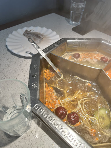 The hot pot broths were good, and the range of options to cook in it was very large, everyone could have some of their preferred dishes. This was particularly good since one of the members of the party was gluten intolerant. Nonetheless some of the food we order was frozen solid when delivered to our table. It is fine since we are cooking it ourselves, but shows that much of the food is not fresh, and they did not even bother to take it out of the freezer much time before.