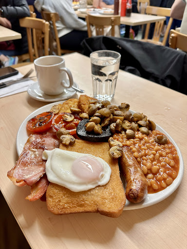 Read moreWe came to check out their English breakfast after seeing them featured on a YouTube video on best English breakfasts in London. The staff were so very warm and welcoming and the plates large and piled with food. They had several renditions of English breakfast; we shared one of the larger meaty ones. For 15 GBP, it was certainly great value. And -- perhaps it was my fault for sitting back, waiting to have my socks knocked off without reading the menu closely -- but I was a little dispirited when "the whole lot (meat)" arrived and there was only one sausage and egg when many/most? English breakfasts seem to give doubles..? and the fried toast (I love a good deep fried carb) somehow did not taste like magic but simply of frying oil. (I know nobody promised me magic, but if I'm going to shorten my life, I want it to be somewhat worth it.) The (deep fried) mushrooms were GREAT, but they were also the only part of our plate that was piping hot.. everything else was more lukewarm, which detracted a little from the heartiness of the meal. My bf really looked forward to/enjoyed the blood pudding though, especially after our first cafe didn't have it and our hotel breakfast buffet's was much too dried out. I both loved and didn't love that they make the English tea for you (vs pot of steeped tea and a carafe of milk) -- because 1) if the latter, and it turns out bad, who can say how much of it was my fault, the quality of the tea, or English tea not being my cup of tea? but sadly 2) they automatically added milk (lactose intolerant peeps mourn :')) But, overall, a very pleasant and bustling small family business.