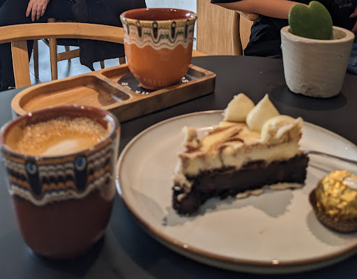 Read moreWould have loved to get excited over this local cafe but found it underwhelming. Food menu seems a bit pretentious for what is quite basic food like avocado on toast. I had a mushroom slice which although crispy pastry went sloppy and greasy when reheated. Coffee stayed super hot for 20 minutes. Overall £7.80 which seemed a bit pricey. I saw the "fresh" fruit was already precut in bags in the fridge which defeats the object of a nutritious menu and allows vitamins to leach out. Decor is stylish and quirky / eco but being a small place with only 16 seats inside it's very noisy when coffee machines are on plus clanking cutlery, music, chat and 3 staff prepping - not ideal if you're neurodivergent or noise sensitive. The samples of sweet treats are a nice touch but perhaps ask customers about allergies before offering pecan. Staff were polite and trying hard, yet very slow serving, so I wish them luck to...