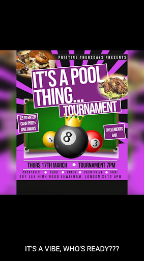 Read moreI have been too the Elements Bar, twice for both being family occasion and the bar is worth such a visit. The staff are welcoming, polite & give great service. They have a pool/snooker table near the entrance and seating around and near the bar. They have a room at the back of the bar, good for parties and celebrations. The deco is lovely with nature vibes. They serve cocktails, spirits and beers of a commercial line up. They also have Guinness (original) draft and Guinness (foreign) in bottles. The bar has a mixed vibes, feel to it. I believe they are dog friendly too (please check with them, I will check too) and I'm not sure if...