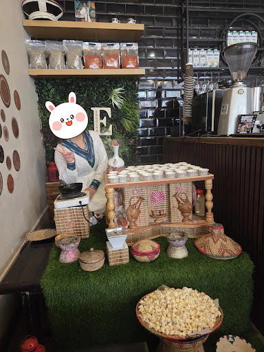 Ok, that all said, special mention goes to the service: it was exceptional! First couple times we visited, the staff were friendly enough if a bit hands-off, but third time we visited, we chatted with them a bit and they offered to let us experience a traditional Ethiopian coffee ceremony ourselves. They have this lovely corner set up after their recent renovation, and they gave me a traditional outfit to wear and walked me through the whole coffee roasting and ritual process with a history and cultural lesson thrown in! This definitely could be a cute little thing to do with friends some time.