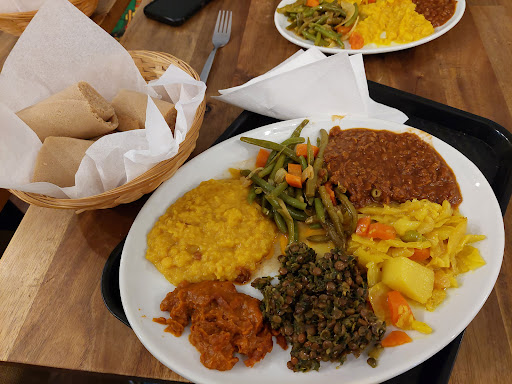 As for the food, it's great value and very tasty for what it is. They have a selection of 6 vegan bulk cooked dishes, kept warm like in a cafeteria, and you can get all 6 plus rice or injera for £10. If you're expecting restaurant style cooked to order dishes or a wide selection of options, this is not the place for you. If you want some quick and good solid homecooked style food, then this is a great choice with authentic Ethiopian flavours. My rating for the food is given with this context in mind and I'm not even vegan lol.