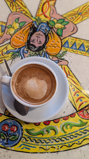 This cafeteria is very clean, well laid out with seating indoors and outdoors - nicely decorated with Sicilian products as well as a display of historical and cultural pieces.