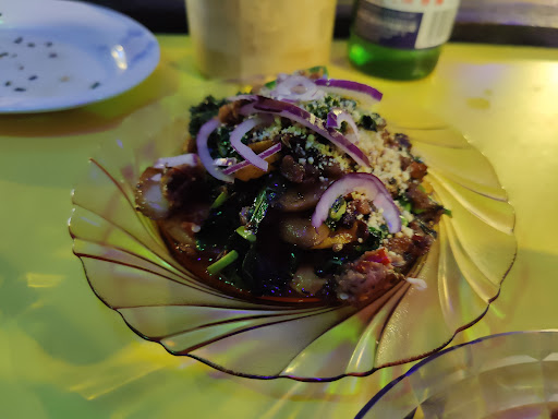 In all, the food tends toward being flavoursome but rich - absolutely do not come here with the expectation of eating healthily! Nearly all dishes were heaving in oil, and if you're unlucky, consumption will almost guarantee an excess of stomach acid. Thus, an alkali salad to balance is recommended amongst the tapas-sized plates available. Similarly, ensure you have at least one of those green bottles of tap water handy. Our waitress was too busy to bring us additional ones so we helped ourselves.