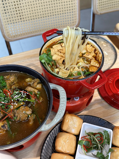 🐟Snail noodle, even the snail noodle comes in a deep red cast iron pot! That’s great! This is a perfect example of combining Chinese and Western food The taste is also super good, including fried yuba, peanuts, sour bamboo shoots and chopped green onion