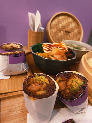 🍙 Rice Balls - Around £8 each Chicken Purple Rice Ball: The purple rice is so fragrant, and the chicken is juicy and well-seasoned. Classic Sausage Rice Ball: The sausage is smoky and delicious, and the rice is perfectly sticky. Both are filling and satisfying—great for a quick bite or a full meal.