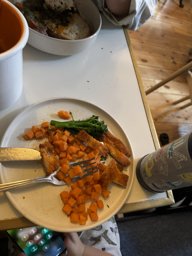 Well lady, we have lived over the world and we do eat out at least once a day almost every single day for a few years now due to this exact same reason, our son is a picky eater. We always order several dishes that we think he might try. and while in an adult menu only restaurant we still order several dishes and we eat all what he refuses upon arrival to the table, it is nice order from kids menu for him to choose. The problem you said was that we are going to eat his food too. Well, should we just throw it away? You said the portions were huge. Okay I will attach the photo of kids schnitzel. Seriously this is big? Our child (4yo) eats three times the size of your schnitzel. And you called it huge. The photo shows a plate where schnitzel is not touched, only broccoli was eaten.