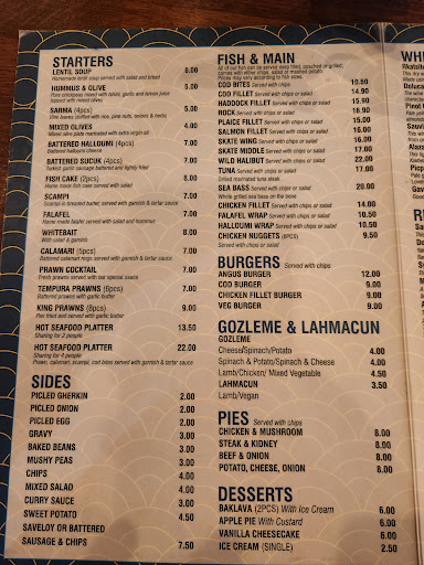The food itself was good freshly cooked but the fish portions were small not large. Weāve never had such small portions. The scampi was particularly delicious a small portion of 6 which was ok as a starter. We enjoyed the chips but the size of the fish was disappointing and the batter was nicely crunchy but slightly too much.