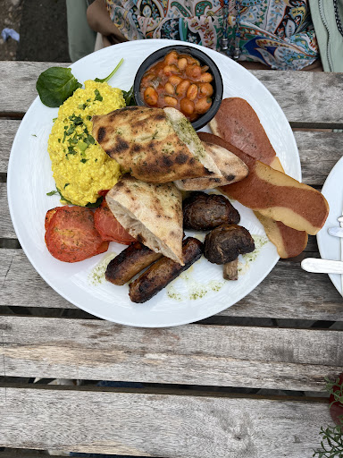 Read moreSet inside a charming local square of food stalls and shops this vegan restaurant is a spectacular experience all around. It was a rainy day and our host / proprietor quickly made space for us among the handful of tables under a canopy. There were three of us so we chose to split meals because the variety on the menu was intriguing and we wanted to know about so many dishes. The standout was a buckwheat waffle accompanied by delicately sautéed sweet potato and broccoli with sides of rich black beans and a slightly sweet — in a good way! — red pepper salsa. We were also riveted by the tofish & chips, a vegan riff on the classic. The breading was crisp and delicate. The tofu was wrapped in nori which added a briny bite that brought home the sea. Chips are chips. And theirs are quite good. Finally we had a beetroot salad. It was simple, elegant and perfectly dressed. Added quinoa and seeds packed in the nutrition and it can be a standalone meal for one. Absolutely do not pass up the freshly made juices. We had the green and the orange/carrot. Each was rich, dense yet smooth. Every drop was savored. The food alone makes this a must go. The gracious owner and accompanying chef cannot be missed. The care, kindness and joy that they exude is clearly part of the magic of this food and experience. We are in the UK for only one more week but will certainly eat here again before...