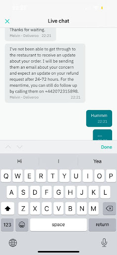 Read moreAnd the owner now replies me and shifts the responsibility to me by saying that they always answer the call and they tried to call me and waited me for more than 20 minutes... Well, good. Let me give you some screenshots as evidence. The first screenshot shows that when I contacted Deliveroo staff, they said they could not even reach your restaurant on phone. The second screenshot showed that the until 10:08 at which I was notified that the pizza was delivered, at 21:50 I could just merely see the status that you were still delivering my food. How come you shifted the responsibility to me? I think it is your fault; you should update the status on the apps as soon as possible when you could not reach me. I ordered a pizza on Deliverloo and made me wait for more than hour (although the estimate arrival was just within half an hour) and then I receive nothing but the restaurant said that the pizza has been delivered! I have never been able to reach the restaurant on phone. Thanks to you, I have nothing to eat for my dinner. Is it a scam? don't order this food at...