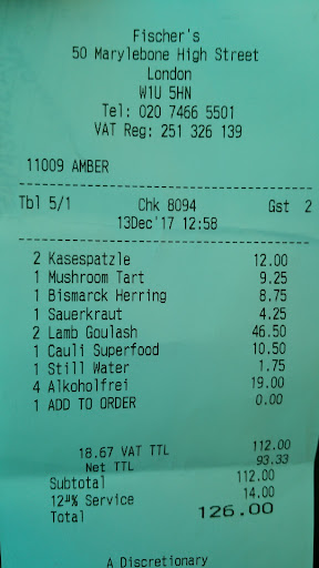 Our bill came to £131, so definitely not a cheap eat. The restaurant charges a cover charge per person and 15% service charge.