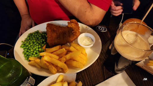 The pub has a warm ambiance. Although the music is a bit loud, it adds to the lively atmosphere of the place. The food selection is truly impressive, ranging from classic fish and chips to more modern options like gourmet burgers and vegetarian dishes, ensuring there’s something for every taste. There’s also an extensive selection of drinks.