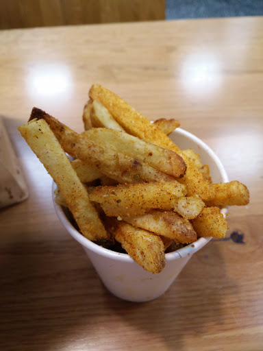 Still, their fries are very well done. Suitably unhealthy being cooked in LDL-cholesterol-laden peanut oil, but very tasty. Add cajun spice for the tastiest experience you can have with sliced fried potatoes in a cup (and a bag... there's a lot of spill over in that typically American abundance).