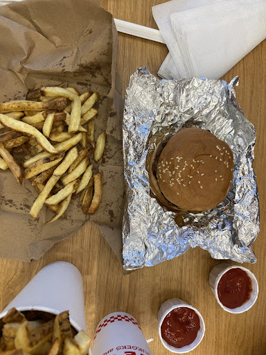 I ordered 2 bacon cheese burgers, a regular chips and a drink for me and my fiancé. Thought we were maybe the third or fourth customer in the shop, and the only order of food at that time, our food for a simple meal still took 20 minutes to make. The staff who was making our food, was the only staff af the lower floor for a while, and he had to leave making our food behind to take a till order leaving our burgers just sitting there. Once we did finally get our food me and my fiancé both realised that the chips were really really overdone and were dry on the inside as well as had a burnt taste to the chips from the outside. We did ask an employee to look at it and they agreed it looked bad so they said they would change it which took another 5/10 minutes, again despite us being one of the few customers there. It was only later once we got the new chips back (which were a lot better now thankfully) I had noticed that my burger was missing the bacon whilst my fiancé’s burger had the bacon and was perfectly fine. I was confused but because I had already ate more than half my burger before noticing, and because I already asked my chips to be taken back, I didn’t want to fuss as well as wait another 20 minutes for a new burger with bacon… overall with the food costing us about £33 in total, the experience was quite bad and the only positive thing which is why I would give 2 stars for food was that their burgers were still okay to eat but for price definitely not worth it, their service 2 stars because it took way too long for the food to arrive, the order going wrong, food being overcooked and the o my slight glimmer was the staff who replaced our chips, and the atmosphere a 3 stars because of their fancy soda machine whic again was still a pain because they didint have one upstairs meaning customer have to leave their food upstairs and go back downstairs if they would like a refill. To conclude I felt quite robbed for the price I paid as well as felt like I had to wait restaurant quality time for my food only to get overcooked as well food with missing ingredients to what I paid extra for… I wouldn’t recommend this Five Guys to anyone in the area as it’s quality is well below par to the other chains I have tried in King’s Cross, London, for example where the speed as well as quality was second to none. Hopefully they can see this review and maybe have an overview to...