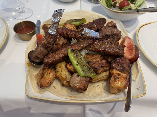 Read moreVisited during a team lunch. Very nice, openly spaced restaurant and friendly staff. For starters had their falafel and hummus. Their falafel was okay - a tad grainy for me - but their hummus was delicious especially with the provided bread. Also had a taste of their fried whitebait and spinach feta borek which were both pretty nice too. For mains I shared their grill platter which came with lamb shish, lamb cutlets, Adana kebabs, chicken shish and chicken wings atop rice and flatbreads. This was £29.50 pp and I believe was great value. Every single meat was absolutely delicious. Particularly, the kebab and two lamb cuts were just sublime. Even their wings, which I initially thought was odd to include, were succulent and just fell off the bone. This came with a lot of food too. Another group of 5 at our table ordered this and could not finish it but they kindly let us take the rest home. Definitely one to order and maybe share amongst more people than you would think. For desserts I had their Kazandibi milk pudding and chocolate pyramids. These were pretty good - not too sweet either. Also had some of their Turkish coffee which was delightful. Overall, great mains with superb meats and pretty good starters and desserts too....