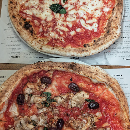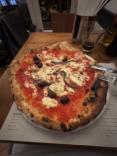 Read moreWe went because it was recommended, but it wasn't great. We waited a ridiculously long time for our pizzas, while delivery drivers kept rushing in and out all the time and of course they take precedence over anyone who's physically there. Once we got our pizzas they were very tasty and delicious although I think rather overpriced, specially as some were very burnt. I've definitely gone to pizzerias with just as good if not better pizzas for a lot less money. The poor service was in enormous need of backup. There were only two ladies, so stressed out they began to get a little snappy when talking to them, and they definitely could've used more colleagues to help out. We made the mistake not to book in advance, so we had to sit outside because our group was large: they won't put tables together inside to make room for groups. And the outdoor picnic tables were rather dirty, with ants, cobwebs and food from previous people staining the surfaces, not to mention not very comfortable to sit on and rather cold even in summer. So I recommend ordering from here rather than going, and if you do go, always book in advance and be prepared...