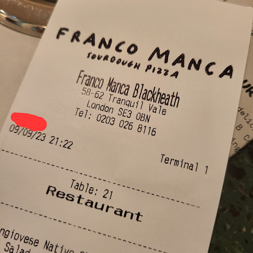 We visited Franco Manca for a family dinner. We had called the restaurant beforehand and asked if a table for 5 was available. We were told that they only had 1 table for 5 which was currently unavailable, but if we made our way there within 30 mins it was probably going to become available. We arrived at the restaurant and explained we had called beforehand and asked if they had the table for 5. The girl at the front desk left without saying anything to call who was presumably the manager, who came over and looked at us unwelcomingly and without saying a word. We explained again and were shown to a table. When we sat down, the waitress came over and seemed impatient to take our order. We asked what the specials were as from where we were sat we were not able to see the board. She replied the specials were on the board, she did not know what they were and she could not see the board either and totally seemed disinterested in helping us. Eventually, one of us had to get up and walked to the board to read the specials. Another waiter then came over to bring our drinks, slammed them on the table without saying anything and loudly chewing gum.