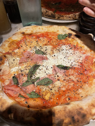 Pity. Regular @ FM in Bermondsey but obviously not for at least 2 years now. Tried a click and collect from FM in Earl's Court. Forced to create an account which kept giving an error message when paying. Discovered that they store your credit card details without consent although they force you to create and account to order. So called-in the order - waitress with an American accent was very pleasant, took the order and told me it would take 10-15min. It's just round the corner so I turned up @ about 12 min. Sweltering hot in the restaurant. The girl with the same accent was very different when I told her I was collecting the phoned-in order. Told me it would be another 10-15min. It was too hot to wait in the restaurant and she didn't care if I had to wait standing on the sidewalk due to her error in timing ...if it's going to take 25min tell me and I'll turn up then ... Simple ... After another 10min another waitress told me that that waitress was "boxing up" the pizzas ... I told her that if the pizzas are baked in a wood fired oven they would usually take 20min and she proudly told me that this oven takes 50secs! I replied that it was already taking 20min....Waited another almost 10 min when I was told that the pizzas were "just going into the oven"! Appalling service! Anyway, fortunately the quality of the pizzas and the salad (really great fresh quality ingredients) saved a potential 2-star review ... It's just the service (and note a similar bad review about the same branch restaurant 5mo ago) was just terrible. Anchovies, spiced salami, the bresaola and esp the mozzarella (it just bursts in your mouth) and the roasted tomatoes - all superb quality. The sourdough base is lovely - flavoured and chewy but the 50sec oven says it all - the base is too charred and the charred areas overpower the flavour of the sourdough. Would be better in a traditional wood...