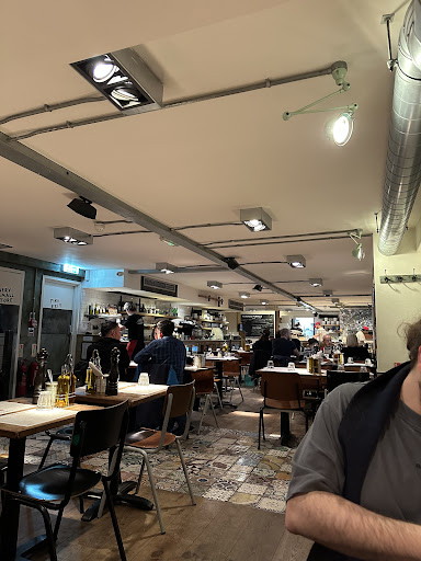Ā Ā Ā Read moreWe dropped in aster a show. As we had not booked we were seated at the left end as you come down the stairs. We were there a while waiting for someone to come and take our order. Whilst we waited I observed the water bottles being filled as our table was right next to the tap. There is a special tap to fill the drinking bottles. The tap was on and overflowing the already filled water bottle. All the staff walking by occasionally removed the bottle and put a nother one there to fill then overfill. I call a waiter over to ask if he could take our order which he did. We order 2 coffees water and 2 pizzas. He made the coffee looked in the fridge for milk and then came over and told us there was no milk so no coffee. My husband asked for orange juice he said they had run out. I had heard him tell the table in front of me they had run out of apple juice so we just stayed with water. There was no friendly customer service with the taking of the order or delivery of the news, just. A staff member doung a job. Our pizzas were delivery by another staff member who was friendly and said to enjoy our pizza. Half way through my pizza a staff member eventually turn off the permanently running tap. I felt relief and sat thinking of all that wasted water. I also observed the half empty water bottles just being topped up. The bottles were not wiped down from the last customer just topped up. Needless to say that although the food was very tasty the service was very under whelming and will not go there again. This is not the service we experienced in other London Franco Mancas. The restaurant was not filled to capacity. There were only walking whilst...