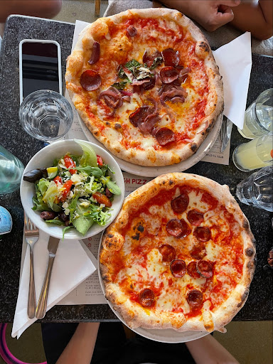 Read moreNoisy, hot, noisy. They say they can seat 10, just be aware that is not together on one table. I know Franco Manca may not be the venue of choice for a family meal for everyone to meet up at Christmas, but dietary preferences are important for some. I should have known it would not go well when booking as the guy taking the booking heard my name as Johnston - it isn't. It's really noisy, and hot. Dicey if you are a wheelchair user, the benches jut out into the aisle so it is a bit of an obstacle course. Never mind, the toilet is not accessible anyway (wish they had said before making the attempt), so we had to go 2 doors down to a different premises. So take note, if you are considering this branch. The benches completely destroy any attempt to interact with family members on different tables, especially when the food arrives. So not a place for sharing. This became especially obvious when plates for sharing took their time arriving. The pizza that had extra olives on it initially arrived without the other topping, but hey, what's a bit of chorizo between, uhh, friends? Talking of friends, I know my next Franco will be Balham again. It's not hot or noisy and it's a lot nicer. If it hadn't been for the fact that this one is right next to Clapham Junction station - everyone was coming from everywhere - I would be there now.