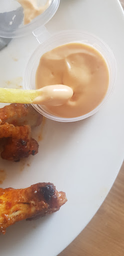 The sauce I put on the chips was peri peri sauce,garlic mayo,ketchup,burger sauce and peri peri seasoning and when mix together itās is succulent,finger licking and tasty And for the burger I put burger sauce,garlic mayo ,peri peri sauce and peri peri seasoning and it hit different And the bbq 8 wing were something else so juicy and rich in flavour and succulent and finger licking and mouth watering and they have different sizes like small and big