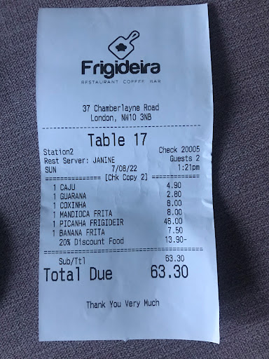 Frigideira is the worst 'Brazilian' restaurant I've been to in the UK. Authentic it ain't! As a carioca (born in Rio de janeiro), I ordered a feijoada, a dish that I know and love from Rio. What a disappointment it was! Watery and bland! There was barely any meat in this 'feijoada'. One of the traditional garnishing of feijoada is couve (green leaves). Couve is fried slowly and with a hint of garlic and seasoned with a bit of salt. The couve at frigideira is served raw and straight from the fridge! Couve is definitely not a salada so should be cooked! I asked the waitress what's going on with this dish as I thought the chef made a mistake. I asked her to ask the kitchen to cook my couve as we do in Brazi, as served raw it's inedible. Waitress said that was how couve was served there but went to ask the kitchen to cook it for me (couve, like any greens, only needs a few minutes to cook). The waitress came back to say kitchen says no, that's how couve is served here and they wouldn't cook it. I was gobsmacked and obviously protested but the waitress said there was nothing they could do as that was the way the chefs' decision. That spoiled my dinner for sure but I was not the only one disappointed . We're celebrating my niece's birthday and she ordered the picanha frigideira for two people; which cust 48 pounds. We're told while ordering that although the dish was for 2 people to share (4 steaks), costumers cannot choose the way they want the meat cooked. So, my niece wanted her steak medium rare and her mum well cooked. Because the kitchen cannot be bothered to cook the meat to the customer preference, my niece had to eat overcooked steak. The waitress couldn't explain this anomaly but said that's how they chef wanted the kitchen to run. Probably because it would be too much work to cook the picanhas to the clients taste not the chef's. Their motto seem to be, just eat raw vegetables & overcooked expensive steaks as we cannot be bothered to cook decent food to paying customers. Therefore, nothing is special or really authentic Brazilian at this restaurant. The service is not as you'd have expected in a quite expensive restaurant. The waitresses were subdued and seemed disinterested in explain the absurdities we encountered in Frigideira. Service was mediocre. Don't believe what hype on their website: you won't feel in Brazil when trying their food unless you don't know authentic Brazilian food and you will not feel at home either. All in all, not a good experience for us from a pretentious and middle of the...