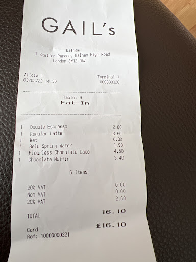 Read moreThere's nothing like a nice bowl of hot soup on a cold day, unless the soup is stone cold of course. So I went back in the shop and my soup was replaced with slightly warm soup, from the same tureen, despite the fact I explained my cold soup had just come from there. I drank it anyway as I was hungry and needed to get on with my day but the final straw was the slice of sourdough provided with it which was completely dried out but for the very centre. At that point I went back in the shop and complained and was given a long excuse about what might have happened when really I was just looking for an apology. I had to ask for the refund. I keep trying Gail's, the bakery goods are all delicious (if very expensive) and the coffee if fine but the service is disinterested and cool. Perhaps it has just grown too big and the management have lost their grip or, like many establishments, it's just using Covid as a cover for poor service. Time's up, I don't want to inconvenience them with my...