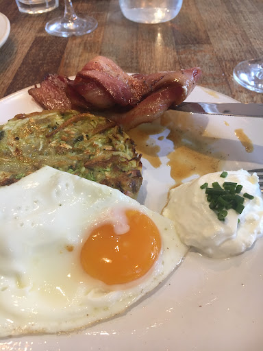 Some of the best food I've had in ages - Gail's is fantastic. The space is beautifully designed, from warm copper light fittings to cosy leather banquettes and white wire 50's style seats. Every table was full, so we took the "chef's table" - really, a breakfast bar but overlooking the tiny kitchen where the charming sous-chef kept explaining the food to us and letting us smell the Rum Babas (which marinate overnight - yum!). I went with two friends and we'd intended to get a quick snack, but the menu, which divides into snacks and sharing plates with equal options for veggies and meat-eaters, was so good that we were quickly seduced into 4 sharing plates (apparently, 5 is the norm to order but, although portions aren't big, the food can be rich so 4 worked for us). The roast beetroot flatbread with lentils and creme fraiche was beautifully balanced, and paired really well with our polenta chips served with a grueyere sauce. The steak and Comte sandwich was huge and delicious - rare grilled steak, fresh horseradish, excellent sourdough and the Comte, yum. For our fourth, we picked Raclette which suffered a bit in comparison to the other dishes due to being a little tiny. We also weren't intending to drink but the cocktail menu (and the helpful, charming waiter) meant we tried the Berry Crush (a fresh, fizzy mix of Sipsmith sloe gin and prosecco) and a very fiery Bloody Mary. For pudding, we couldn't help but pick cookies and milk - an adorable tiny bottle of milk with a candy striped straw paired with freshly baked cookies (we could smell them!) - as there were three of us, they made three cookies. From beginning to end, all the staff were incredibly charming and knowledgeable, all the food (everything we watched going out) looked delicious, and, for £22 each, it wasn't cheap but very reasonable given the quality of food and the atmosphere. Can't wait to go back. My only tiny quibble is that the space is part of Central Working's reception rather than a closed off restaurant, but you soon forget about that once...