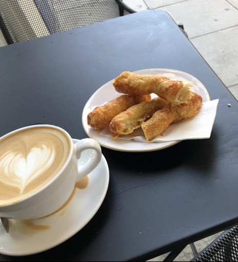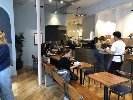 There is also plenty of seating. If you want to just grab a quick seat to eat and leave or sit for a while at a table and do some work. They have both. They also have a larger table at the back where you can see some of the baking happen in front of you if you get there at the...