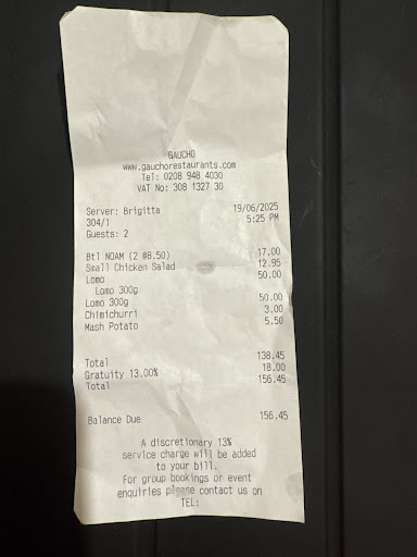 Gaucho Richmond was excellently run; serves exquisite food, wine and cocktails; is immaculately clean; displayed 5 star service standards, team work and communication from start to finish and is the place to go for a night to remember.