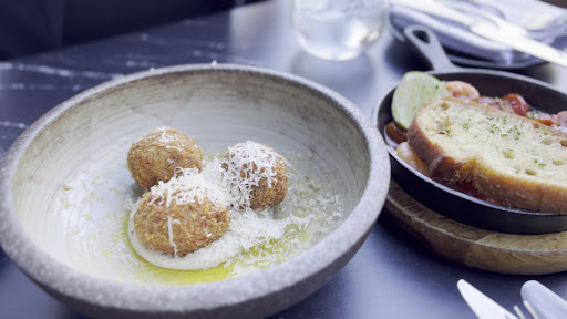 My fellow diners and I eat in a sharing style. We ordered the Burata salad - very delicious with the fresh creamy cheese and the fresh salad. We went for the truffle arancini, these were crispy and light on the outside while being rich, cheesy, moist and truffly goodness on the inside. There was also the prawns in a fresh tomato sauce and garlic bread, although quite simple, the prawns were good quality, well cooked and elevated the dish with a punchy piece of garlic bread. Finally, we had ordered the fresh bread which was excellent and a must for any dinner.