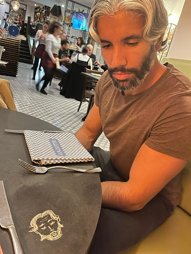 Read moreAnother day in a Divorcee life, this time The Best in the World took his friends to a place called Gazzette in London We started to order something to drink and in the meantime we had fun, since the table and chalk entertained us, though after a while a girl arrives, The Avenger and his charm already started to attack and at this point it's us four, plus the new female Avenger, maybe the Impulsive female, and why I'm telling this, because you can see the drawing, your Divorcee mentor it's an artist. You can see how elaborated it is right? So imagine how long we waited for the food, and when it arrived, our 500gr chateaubriand looked a 250gr, it was like a Tinder catfish. Elisa, ordered noodles with lobster (your God's possible new lobster) but they didn't tell us it was a treasure hunt, since we never found the lobster. Creme brulé and the French fries were delicious, the ventilation system it was so and so, the sound system didn't exist but it was too loud inside. The waiter that tool care of us was having his first day at work but also on planet Earth, since we wanted to pay with card and he asked "what is that", which is clearly one of The Avenger's best inventions. He also spilled tonic water on top of Elisa, but poor guy, who doesn't get nervous in the presence of Your Majesty?? We had fun, we draw, we eat, and met who might be the future Queen, or just The Avenger swiping around. If you're an artist who didn't win in life, here you can try to impress the...