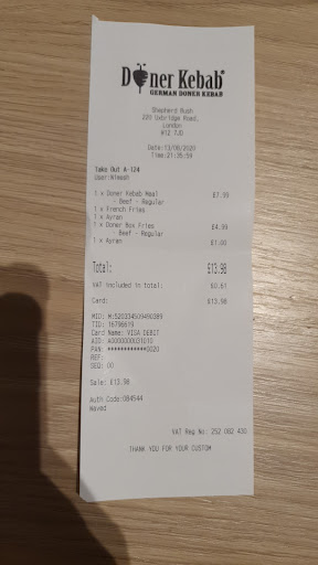 I'm usually hesitant to go to a kebab shop, remind of all these 90's Greece Kebab shops that pop around london, that smell bad, crease all over, untidy and meat you usually get is cheap imitation. I got to admit the restaurant looks clean tidy has a good appearance inside. However no sit in as, it's take away only. Markers for social distancing, looks out of control and no hand sanitizer available.