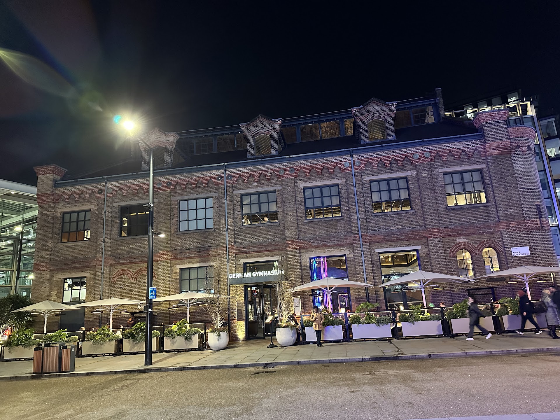 We actually went to the German Gymnasium by chance because we were looking for Redefine Meats New Meat Vegan Beef Flank which they didn’t have at the first restaurant we went to. Therefore we walked the 45min from Soho to Kings Cross and boy was it worth it!!! First of all we were joking since my girlfriend and I are German it was kind of funny to come to this place but already when we entered we were impressed by the location. Way back when… the building was originally built for the German Gymnastics society and the venue even hosted part of the first Olympic Games in London. They seemingly gave it a modern touch in the not too far past as the building seemed very modern to us. We were shown to our table on the top level, overseeing the entire restaurant which looked very impressive and to me we could not have had a better table. Our waiter introduced himself and was extremely polite, friendly, yet professional. As we already knew what we wanted. We ordered a bottle of water (no wine due to DryJanuary), some sweet potatoe fries and twice the Redefine Vegan Beef Flank. It took probably 15-20min for the order to arrive and we were simply blown away, not only by the “Beef” itself but also the entire dish was just perfect, besides maybe being a bit small. As this felt like a high class dining experience and the Redefine Meat is sadly still a rare ingredient, I guess the price was acceptable. The combination of the “meat” the broccoli and the balsamic sauce was very well done and supported the star of the dish perfectly. The Sweet potatoe fries were good too though there too the amount could have been bigger and we usually prefer a bit more salt. We actually had to ask our waiter for salt and pepper shakers because there were none on the table. We would definitely eat there again since, the meal itself and the location impressed us...
