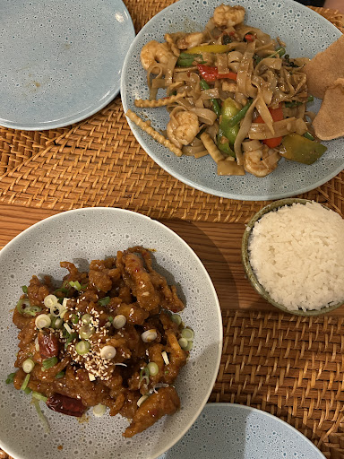 For our main we ordered pad kee mao, sticky chicken and jasmine rice. We were surprised when our food came out in less than 10 mins of us ordering. We hadn’t even finished our Thai cracker starter. The sticky chicken was soggy, stodgy, dry and tasted of corn starch; it was not crispy or sweet and sour like the menu said. You can see the difference of the chicken we had vs the picture online. The jasmine rice was dry and stodgy and clumped together like sticky rice. We didn’t finish these dishes as it was pretty disgusting. We suspected the food had been cooked earlier and left out, due to the condition it was in and how quickly it came out. Lastly the pad kee mao was flavourless compared to ones we’ve had in other GS branches.