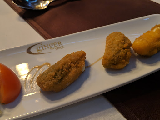 Read moreIf you are looking for an indian restaurant look no further as Ginger Spice is clearly the best. Decorated beautifully with a large comfortable bar area to relax whilst having pre dinner drinks.The waiters are so friendly, helpful and nothing is too much trouble. The food was all lovely. The flavours of the spices with the beautiful presentation made every mouthful wonderful. It was a totally different experience for me as I normally choose a sauce based curry but I decided to opt for fish and king prawns and it was so fully of flavour and the fish remained delicate. My husband chose the salmon main and the spice added to a lovely salmon fillet. We were not rushed and had a great interaction with the waiters. They made sure all 10 of us were served together by using a restuarent dessert trolley to bring all of our dishes at once. The only disappointment was another unnecessarily noisy table of 10 next to us which made conversation difficult whilst they were at their table. But that unfortunately happens sometimes nowadays. The main restuarent was much quieter with curved booth setting to give more privacy which is ideal for smaller groups. I can recommend...