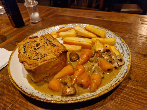 The steak and ale pie I ate just now was absolutely superb, they bothered to present it with a quarter braised cabbage which looked lovely on the plate and tasted great. Gravy was actually something to write home about. The pie was just floury enough and not sloppy, with huge depth of flavour.