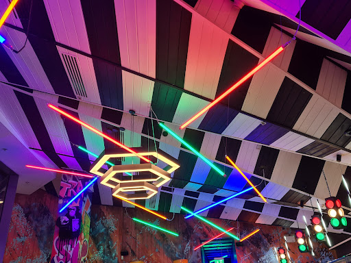The ambience is very quirky and modern. There are traffic lights and various other lights for decor which add to the atmosphere and give it a very unique feel. Unfortunately the loos are tiny and cramped, and very dark because they are using some kind of bizarre UV lights. The soap containers on the wall are falling off.