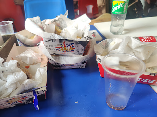 First of all, we were astounded by the surprisingly expensive pricing. Our modest order of three cans of soft drinks, chicken wings, and twice as much chicken and chips came with a bill of ÂŁ38.25, far more than we could have imagined. The restaurant's exorbitant rates seem to be an unwanted surprise for guests on a tight budget, as it seems the establishment is taking advantage of its great location.