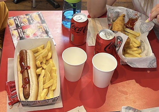 First of all, we were astounded by the surprisingly expensive pricing. Our modest order of three cans of soft drinks, chicken wings, and twice as much chicken and chips came with a bill of £38.25, far more than we could have imagined. The restaurant's exorbitant rates seem to be an unwanted surprise for guests on a tight budget, as it seems the establishment is taking advantage of its great location.