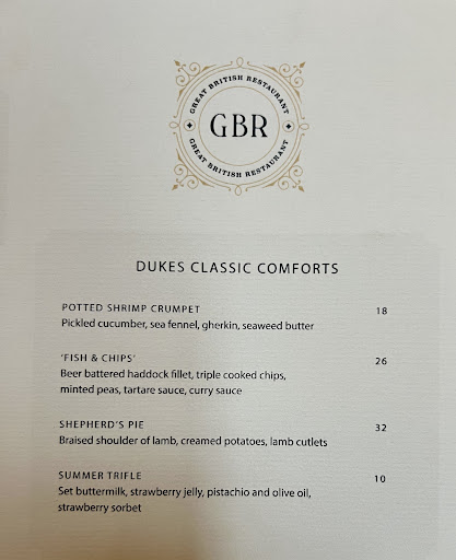 The lunch menu is appealing, though the wine selection is limited. Unfortunately, no Dukes martinis are available on Sundays, as Dukes Bar is closed.