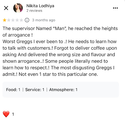 Greggs seriously needs to train their staff properly, especially supervisors, and make sure they understand how to treat customers with respect and professionalism. This experience left me feeling embarrassed and upset, and it definitely puts me off visiting this...
