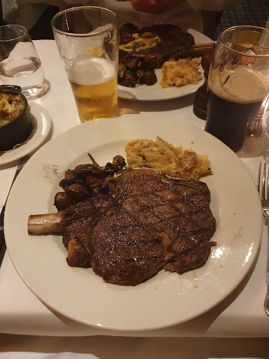 Read moreThis was good. But itâs definitely slipped overall. I know thereâs a renovation on the horizon which is needed as the dining room is gone tired. Our starters were outstanding - Cornish yarg dumplings and stunning oysters. Odd that the manager said the dumplings were sitting in truffle mash. It was actually cauliflower purĂ©e. Our pie was also excellent. Really good. Our bone in sirloin was a let down. It was cooked perfectly although it hadnât been rested at all / long enough - but the steak itself was definitely ( very ) light for 458g ( by a good bit ) and it had quite a bit of tendon / connective hoo ha that I struggled to cut even with the steak knife. My GruyĂšre creamed spinnach was just ok. Felt like it had been under a heat lamp for the morningâŠ..Bernaise and Dijon mustard were excellent. I had two pints of Guinness. In old style tulips. Amazing. The first pint was perhaps the best pint Iâve had in London. The second pint arrived spilled. With an apology. And then dripped All over the table. So I cleaned the spillage and the glass up with my napkin. And then had a manky Guinness napkin for the rest of the dinner. The pint shouldnât have been served. We had a Couple of glasses of champagne - these on a French scale were coupettes. Quite stingy. Nice champagne though. We also had a G&t which arrived as a double without us being asked for a size preference. Overall the lack of detail around the service surprised me. Our bill for a quick Saturday lunch was 250ÂŁ. At 130pm the restaurant was empty bar two tables. ( there was a big protest on and it was...
