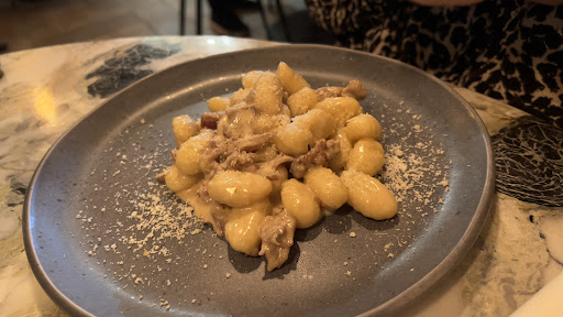 Bruschetta was incredibly nice, but the time between starter and main was far too long, the pizza was nice but nothing special and far too much crust to topping, but my girlfriend said the gnocchi was very nice. They served the food and my girlfriend couldn’t eat it for a while because her eyes were irritated from the chefs burning food. The food did not justify the high prices & limited menu options.